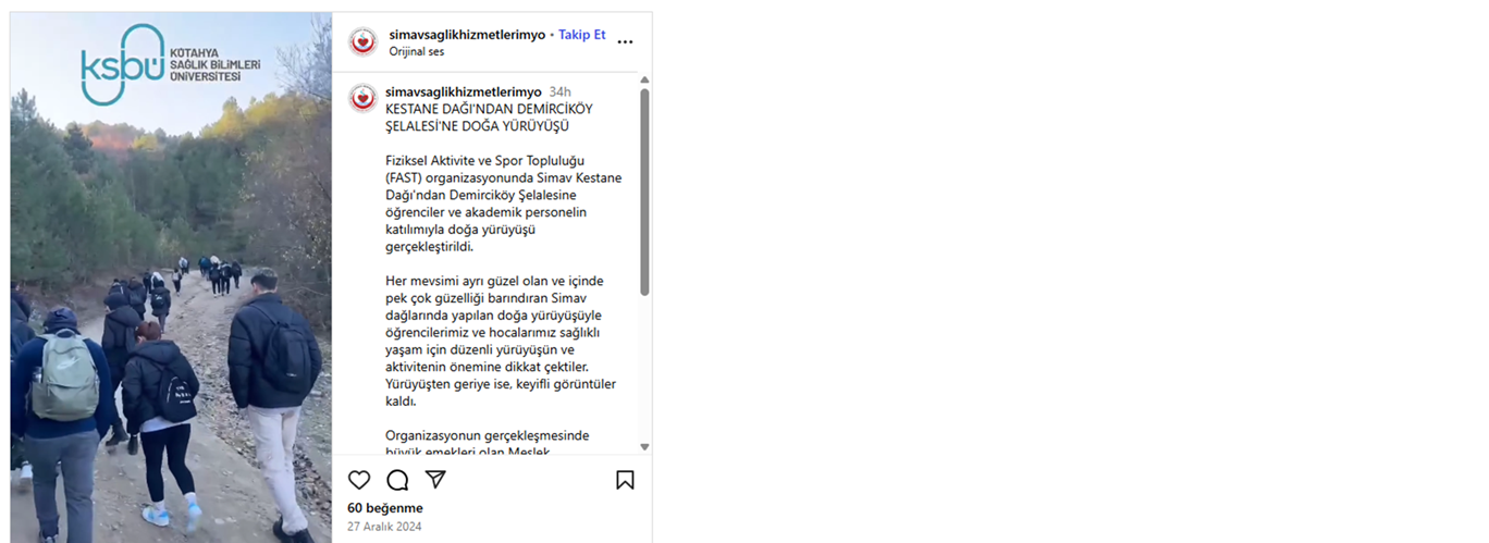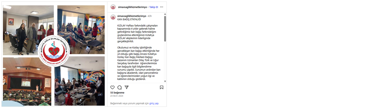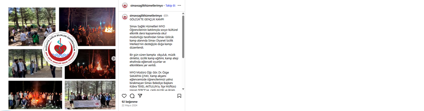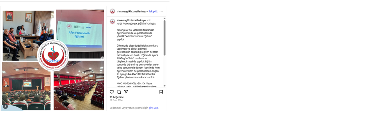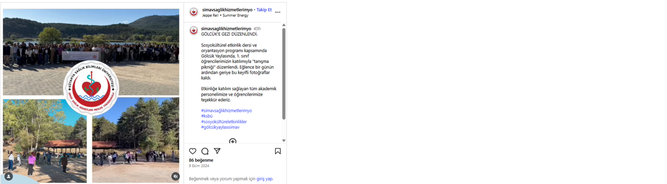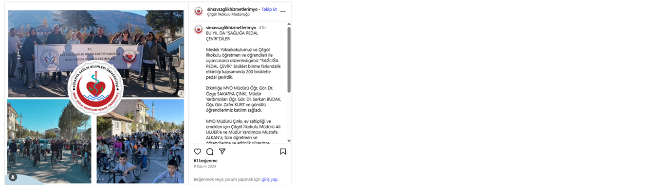 Erasmus Öğrenci Hareketliliği Bilgilendirme Online Eğitimi Doğa YürüyüşüSağlığa Pedal ÇevirAfet Farkındalık Eğitimi Meme Kanseri Bilinçlendirme ve Farkındalık EtkinliğiKan Bağış EtkinliğiSıfır Atık ve Atık Yönetimi EğitimiGölcük Doğa GezisiOryantasyon EğitimiGençlik KampıTiyatro GösterisiTıbbi Laboratuvar Çalışanları Haftası Son Güncelleme Tarihi: 02 Eylül 2025, Salı